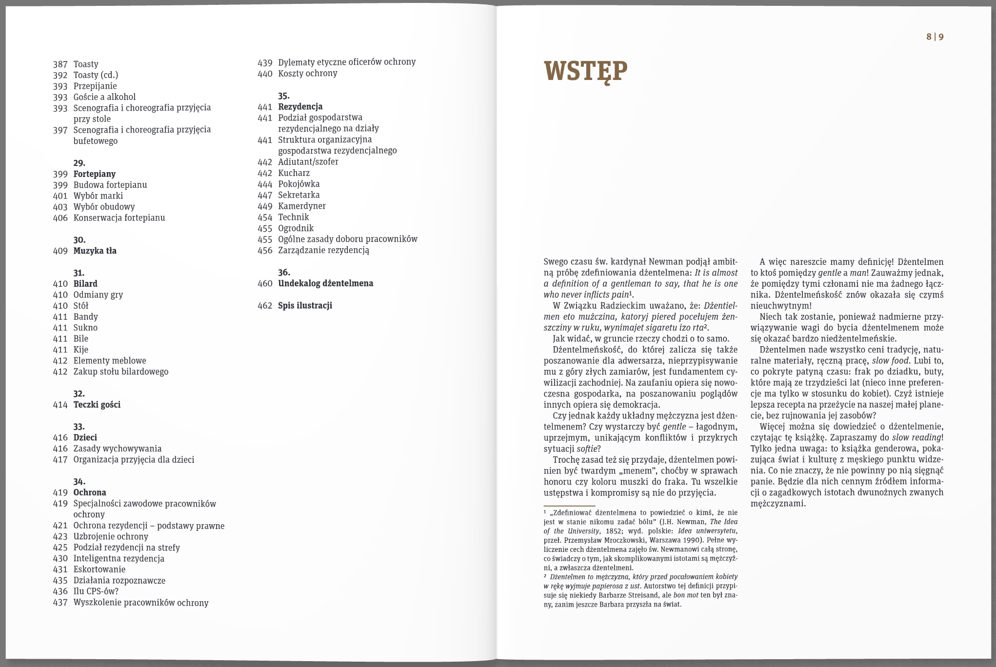 Jasne będą dla nas okoliczności pochówku w kawiarce i polski wzór tartanu, dowiemy się więcej o pluskwach w pałacu Potockich w Jałcie i o sztućcach w rezydencji Prezydenta RP. Zaznajomimy się z historią hot doga oraz niektórych hymnów i pozdrowień, zastanowimy się, jak rozplanować rezydencję, jaki wybrać fortepian i stół bilardowy. Dowiemy się, dlaczego kamerdynerzy zarabiają nawet 220 tys. euro rocznie, i na czym polega różnica pomiędzy tegestologią a filematologią.